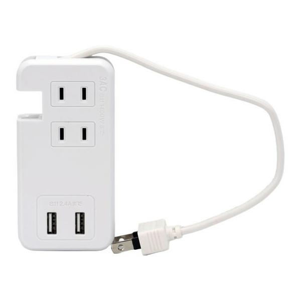 - 【商品説明】●本体にケーブルを収納でき、コンパクトで持ち運びに便利!●スマートフォン、タブレット、ゲーム機などを充電できる!【仕様】●AC100V、50/60Hz、1400Wまで●ACコンセント数:3個口●USBポート数:Type−A×2ポート、合計最大2.4A●電源コード長さ:約23cm●本体色:白色●スイングプラグ●耐トラッキングプラグ●商品重量:約130g●パッケージサイズ:約205×90×27mm●JANコード:4562169763050 <ジェットプライス>