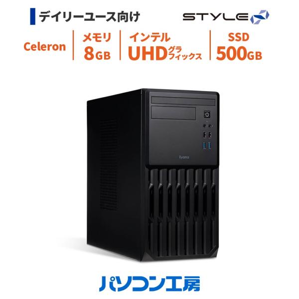 - デイリーユース向けパソコン STYLE∞(スタイル インフィニティ) メール、SNSやネット動画鑑賞といった日常のパソコン利用シーンを快適にするデスクトップパソコン、ノートパソコン ラインナップ。 やりたい事に合わせて、幅広いスペックのモデルからお選びいただけます。 新品 1年間無償保証付、24時間365日 電話サポート、全国店舗でのサポート受付など、購入後も安心です。iiyama PC STYLE-M47M-C69-UHX-M 形状ミニタワー / microATX OSWindows 11 Home アンチウィルス・セキュリティ対策ソフトセキュリティソフトウェア 30日体験版(ノートン) プリインストール CPU型番インテル Celeron プロセッサー G6900 (3.40GHz/2コア/2スレッド/4MBキャッシュ/TDP 46W) CPUクーラー空冷CPUクーラー グラフィックスインテル UHD Graphics 710 (CPU統合グラフィックス) メモリ規格DDR5 メモリ容量8GB(8GB×1) メモリスロット数2 1stストレージ500GB SSD / NVMe M.2 光学ドライブ光学ドライブ非搭載 チップセットインテル B760 オーディオ機能High Definition Audio subsystem 有線LAN機能1000BASE-T 無線機能非搭載 (別途USB子機等をご利用ください) 電源550W 80PLUS BRONZE認証 ATX電源 キーボード日本語キーボード マウス・ポインティングデバイス光学式マウス 拡張スロット1PCI Express4.0 [x16] 拡張スロット2空き 拡張スロット3PCI Express4.0 [x1] 拡張スロット4PCI Express4.0 [x16] ※x4動作 拡張ベイ3.5インチベイ×1 ,2.5インチ内蔵ベイ×1 外部端子(前面)ヘッドフォン端子×1 ,マイク端子×1 ,USB 3.0×2 ,USB 2.0×2 外部端子(背面)アナログ6chサウンド(ライン出力×1/ライン入力×1/マイク入力×1) ,USB 3.2-Type-C×1 ,USB 3.0×2 ,USB 2.0×2 ,1000BASE-T LANポート×1 ,マザーボード側ディスプレイ出力(DisplayPort×1/HDMI×1) 内部端子M.2×2(Key ID:M/PCIe Gen4 x4 /Type:2260/2280) ,SATA 6Gbps×4 ,内部USB 3.0(×4ポート分/20Pin×2) ,内部USB 2.0(×4ポート分/10Pin×2) TPMTPM2.0(インテル PTT) 主な付属品電源ケーブル ,各種マニュアル ,保証書 エネルギー消費効率/達成率目標年度2022年度 17区分 68.7[kWh/年] 省エネ基準達成率AA サイズ約幅175mm×奥行370mm×高さ356mm ※最大突起物除く 標準保証 1年間保証 備考1・価格・仕様に関しましては予告なく変更することがございます。・画像はイメージです。実物とは色合い・形状など異なる場合があります。備考2・モニターは付属しません。(別売)BTO(受注生産)モデルについてこちらのパソコンは受注生産(BTO)モデルです。ご注文確定後の仕様変更、キャンセルはできません。再度商品に間違いがないかお確かめください。 BTOモデルにつきましては、商品配送日のご指定ができません。商品の準備ができましたら順次発送を行います。予めご了承頂きます様、お願い申し上げます。在庫・納期について当店では、弊社公式通販サイト、他のモール通販サイトと在庫を共用しており、ご注文が集中することにより在庫が揃わなくなる、または納期が延期となる場合がございます。予めご了承頂きます様、お願い申し上げます。商品のご用意ができない場合、納期に変動があった際にはメール、またはお電話にてご連絡申し上げます。