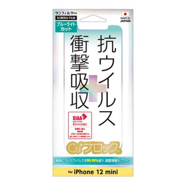 ■商品名:iPhone 12 mini 液晶保護フィルム 抗ウィルス加工 衝撃吸収 ブルーライトカット Cu+ブロック