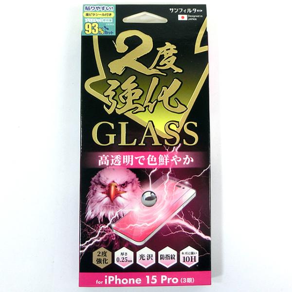 iPhone 15 Pro 2度強化ガラス 光沢 透明タイプ 0.25mm # i37RGLW アイフォン SUNCREST スマホ用液晶保護ガラスフィルム ネコポス複数同梱OK