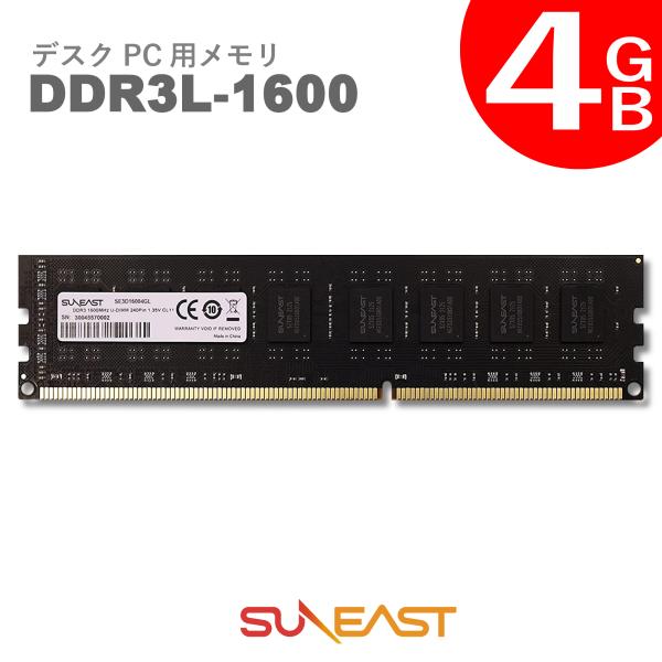 【正規代理店】SUNEAST デスクトップPC用 メモリモジュール 4GB DDR3 メモリー 増設 1600MHz 内蔵 パソコンメモリ 240pin U-DIMM 1.35V 無期限保証 SE3D16004GL