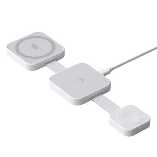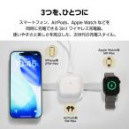 - 【商品解説】●3in1 ワイヤレス充電iPhone・Apple Watch・AirPods 3台同時に充電が可能。必要な場所に置くだけで充電ができるスマート設計。●Qi2.25W 対応。急速ワイヤレス充電スマートフォン最大25W、イヤホン最大5W、ウォッチ最大5Wマグネットによる性格な位置合わせで安定した高出力充電を実現●すっきり収納&持ち運びに便利本体重量 約89g。マグネット式モジュールですっきり収納。コンパクト設計で出張・旅行に最適。※1mケーブル付属●ぬくもりのある素材を採用本体にはABSとシリコンを組み合わせた素材を採用。しっかりとした強度を保ちながら、やさしい手触りを実現。【スペック】●型式:SE-WC025FC004WHF(SE-WC025FC004WHF)●JANコード:4573574592098本体サイズ(幅×高さ×奥行)mm:85×30×57mm本体重量:89g接続端子:USB Type-C仕様1:スマートフォン出力:25W/15W/10W/7.5W/5W仕様2:イヤホン出力:5W(最大)仕様3:Watch出力:5W(最大)この商品は宅配便でお届けする商品です出荷可能日から最短日時でお届けします。※出荷完了次第メールをお送りします。配送サービス提供エリアを調べることができます「エリア検索」をクリックして、表示された画面にお届け先の郵便番号7桁を入力してください。ご購入可能エリア検索お買い上げ合計3,980円以上で送料無料となります。※3,980円未満の場合は、一律550円(税込)となります。●出荷可能日から最短日時でお届けします。(日時指定は出来ません。) ※お届け時に不在だった場合は、「ご不在連絡票」が投函されます。 「ご不在連絡票」に記載された宅配業者の連絡先へ、再配達のご依頼をお願いいたします。●お届けは玄関先までとなります。●宅配便でお届けする商品をご購入の場合、不用品リサイクル回収はお受けしておりません。●全て揃い次第の出荷となりますので、2種類以上、または2個以上でのご注文の場合、出荷が遅れる場合があります。詳細はこちら■商品のお届けについて商品の到着日については、出荷完了メール内のリンク(宅配業者お荷物お問い合わせサービス)にてご確認ください。詳しいお届け目安を確認する1度の注文で複数の配送先にお届けすることは出来ません。※注文時に「複数の送付先に送る」で2箇所以上への配送先を設定した場合、すべてキャンセルとさせていただきます。