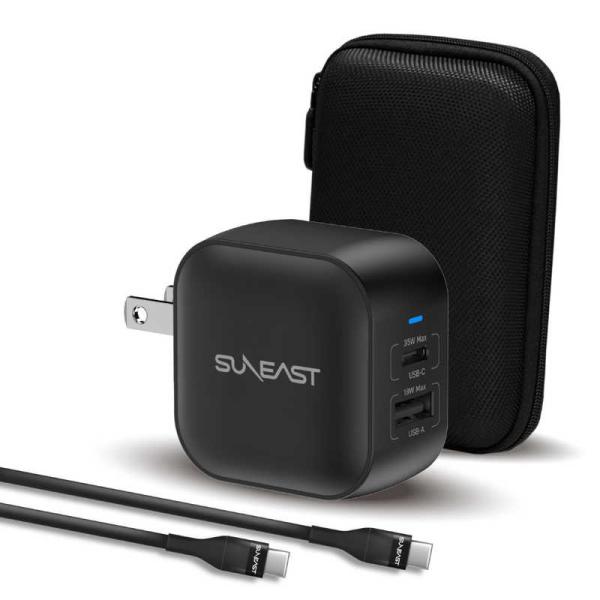 SUNEAST USB急速充電器 35w シリコンケーブルPD対応60W(1m付) 収納ポーチ付 ブラック SE-AC035CC001BKF