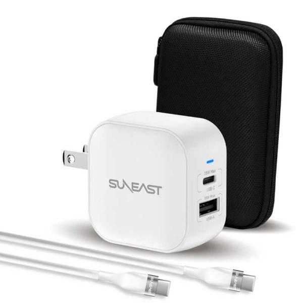 SUNEAST USB急速充電器 35w シリコンケーブルPD対応60W(1m付) 収納ポーチ付 ホワイト SE-AC035CC001WHF