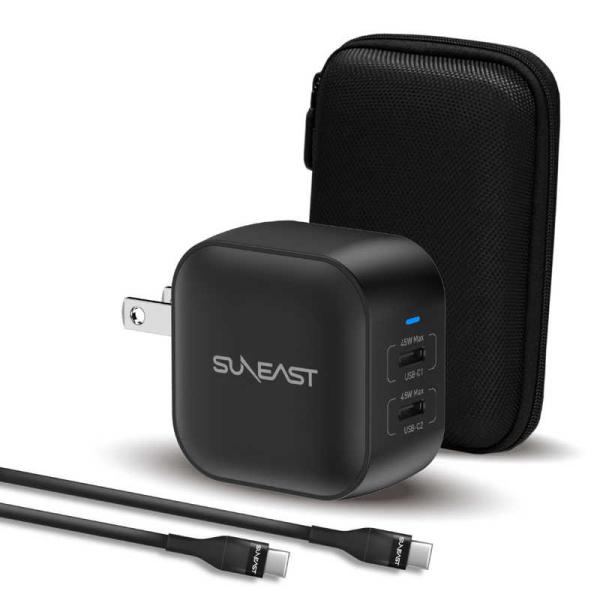 SUNEAST USB急速充電器 48w シリコンケーブルPD対応60W(1m付) 収納ポーチ付 ブラック SE-AC048EC001BKF