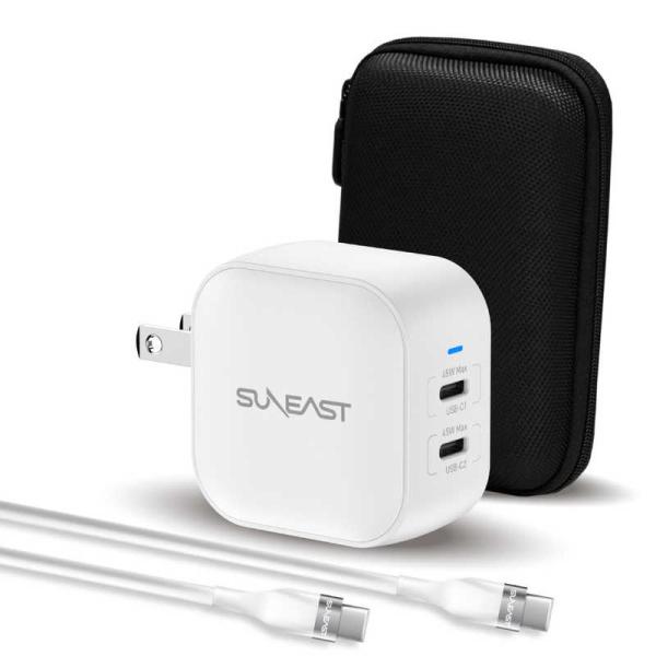 SUNEAST USB急速充電器 48w シリコンケーブルPD対応60W(1m付) 収納ポーチ付 ホワイト SE-AC048EC001WHF