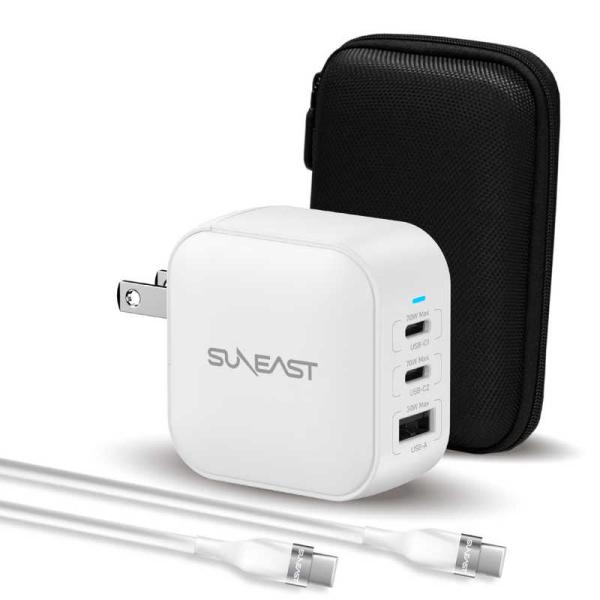 SUNEAST USB急速充電器 70w シリコンケーブルPD対応100W(2m付) 収納ポーチ付 ホワイト SE-AC070DC001WHF