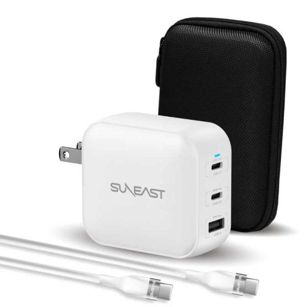 SUNEAST USB急速充電器 100w シリコンケーブルPD対応100W(2m付) 収納ポーチ付 ホワイト SE-AC100DC001WHF