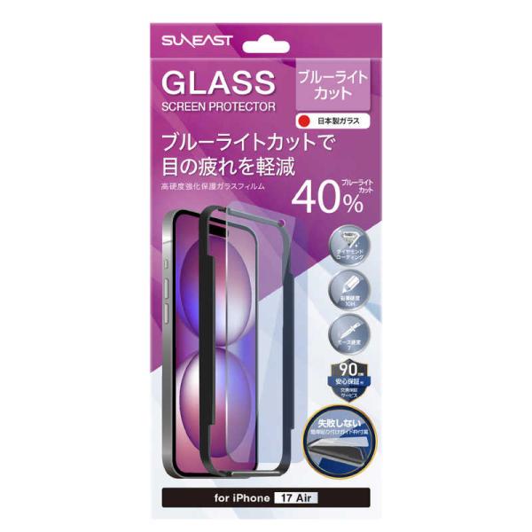 SUNEAST iPhone Air フィルム ブルーライトカット ダイヤモンドコーティング 10H 気泡レス 取り付けキット付 SE-GLBJ1B0AF SEGLBJ1B0AF