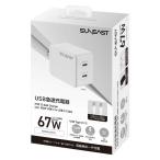 SUNEAST 急速充電器 67w USBtypeCx2ポート / GaN(窒化ガリウム) 採用 シリコンケーブル2m付 小物入れポーチ付 ホワイト SE-AC067C01WHF