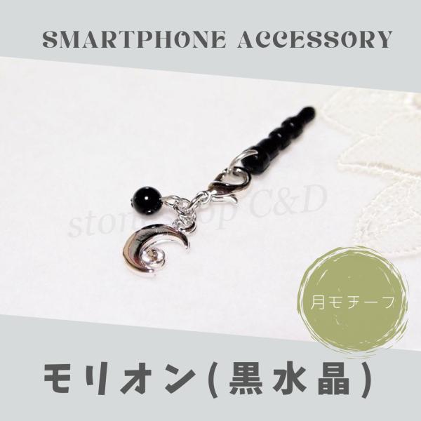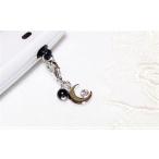 ストラップに変更OK モリオン(黒水晶)の月のイヤホンジャック2 スワロフスキー ブラック くろ クロ black つき チャーム ムーン スマホピアス