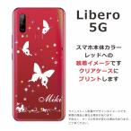 Libero 5G ケース リベロ5G カバー ラインストーン かわいい らふら 名入れ スリーバタフライ