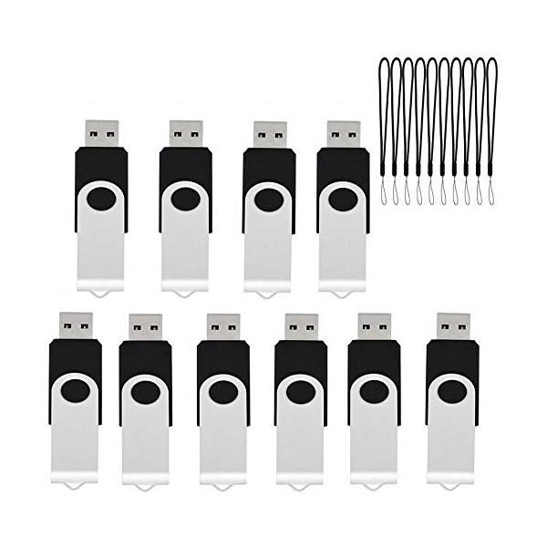 POWVAN USBメモリ8GB USB2.0 10個 ブラック8GB 回転式 usbドライブ フラッシュメモリ データストア