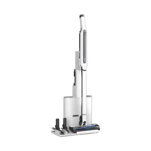 - Shark シャーク CS150JAE EVOPOWER SYSTEM STD+ スティッククリーナー ホワイト CS150JAE [コードレス /水拭き非対応] 0622356267045 パワフルな掃除力に自動ゴミ収集ドックをプラス!あらゆる床や家具の上も驚くほどきれいに。 【商品の特徴】パワフルな掃除力とシンプル操作で、手軽に使えるコードレススティッククリーナー。都度のゴミ捨てから解放される自動ゴミ収集ドック付きモデル・自動ゴミ収集ドック搭載 面倒なゴミ捨ては月1回に**1日1回使用した場合。部屋の環境により異なります。・部屋に出しておけるデザインだから、いつでもサッと使える・掃除機を戻すだけで充電 掃除が終わったらドックに戻すことで自動的に充電が開始され、必要な時にすぐに使えます。・強力な掃除力であらゆる床のゴミをキャッチ。毛も絡まない**シャーク社テストによる。長さ45cmの毛0.25グラムを0.6m2のフローリングで10サイクルテストした結果・マルチフロア対応「ブラシレスパワーフィン」搭載 シャーク独自開発のブラシレスパワーフィンが、フローリングからカーペットまで、さまざまな床に常に密着。 大きなゴミから細かいホコリまで一度でより多くのゴミを取り除きます*。*CS300(非売品)に搭載されたブラシロールとの比較・ほこりが飛び散り、手が汚れてしまう掃除機本体からのゴミ捨てが不要に。 従来のゴミ捨てよりもホコリが飛び散りません。 HEPAフィルターが細かいホコリやアレルゲンを99.99%閉じ込める*から、排気もクリーンで衛生的。 自動ゴミ収集ドックは紙パックの交換が不要なため、ランニングコストも抑えられます。 ダストボックスは水洗いが可能です。*0.3-10μmの粒子におけるIEC規格62885-2 Cl 5.14に基づく。・すべるような操作性・ワンタッチでハンディに・家具下のお掃除も奥まで届く・お手入れも簡単 ボタンを押すだけでゴミ捨てが簡単。ゴミも飛び散りづらく、ゴミに触らなくていいから衛生的です。【商品の仕様】■カラー:ホワイト■運転時間: ハンディ 最大17分 コードレススティック 最大13分■充電時間:約3.5時間■サイズ(高さ x 幅 x 奥行): コードレススティック 1030 x 267 x 124 mm ハンディ 500 x 67 x 86.5 mm 収納時 1057 x 410 x 257 mm ※ミニドック付き■重量: コードレススティック 約1.9kg ハンディ 約0.9kg 5