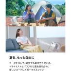 - 【延長補償3年】950円【延長補償5年】1,500円夏を、もっと自由に。コードを外して、屋外でも屋内でも使える。ドライミストとパワフルな風を独り占め。新しいコードレスポータブルファンコード付きでも、コードレスでも。場所を選ばず自由に使えるコード付きでもコードレスでも使えるから、リビングからコードを外してキッチンや脱衣所に持ち運んだり、庭に出して涼んだり。キャンプなどのアウトドアにも持って行くことができます。屋内でも利用できるドライミスト。ミストで最大2度涼しく超微細な霧状のドライミストだから、屋外だけでなく、屋内でも家財を濡らすことなく安心して使えます。ミストの気化熱効果で最大2度*1温度が下がり、細かな粒子のミストでリフレッシュできます。タンク一体型なので、タンクに水を入れてミストボタンを押すだけで最大1時間*2ミストを楽しめます。*1気温30°C、風量3で0.9m離れた環境での試験結果に基づきます。実際の効果は環境によって異なる場合があります。*21回の給水で断続ミストモードを使用した場合最大20m先に届くパワフルな風を実現*コンパクトなのにパワフル。ソフトな風からブーストモードまで6段階からお好みの風量に調整可能。*ブーストモードの場合コードレスで最大12時間駆動*コンセントがない場所でも充電切れを気にせず、安心して使えます。*風量1でミストなしの場合パワフルなのに驚くほど静かBLDCモーター搭載で、パワフルなのに驚くほど静か。夜の就寝や子供のお昼寝も妨げません。カラーグレー/ホワイト/運転時間風量1:12時間風量3:3.5時間風量5:1.5時間※コードレス時、ミストなし充電時間約3時間サイズ(高さx幅x奥行)29.1x21.2x22.0cm重量約2.0kg電源コード長さ約1.8m