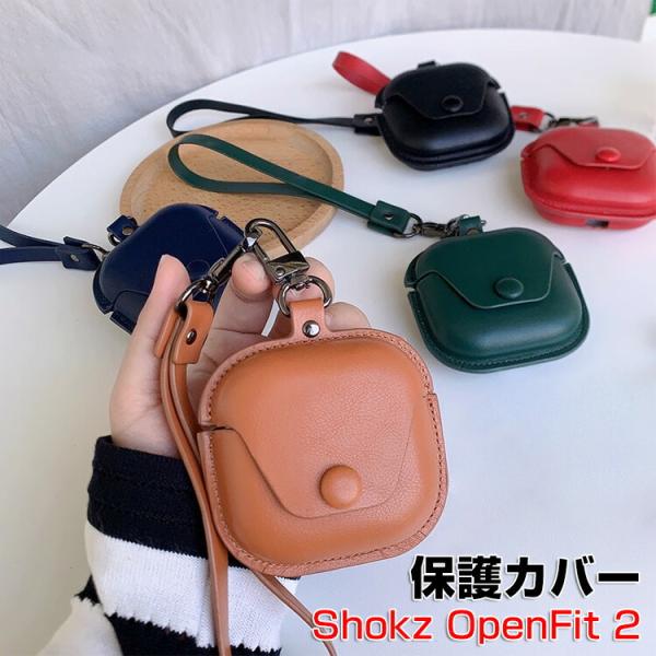 - Shokz OpenFit 2 ケース PUレザー カバーイヤホン・ヘッドホン アクセサリー CASE ショックス オープンフィット2 T920 SKZ-EP 耐衝撃 落下防止 収納 保護 ケース カバー 便利 マルチカラー カバーを装着したまま、充電タイプ可能です カラビナ付き ストラップ付き