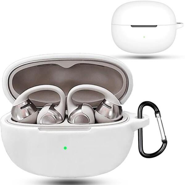 For shokz opendots one ケース 対応 shokz opendots one 柔らかく快適なシリコン素材(カラビナ付き )損失の防止 落下防止 キズ防止 耐衝撃 装着充電可能 防水 防塵 (ホワイト)