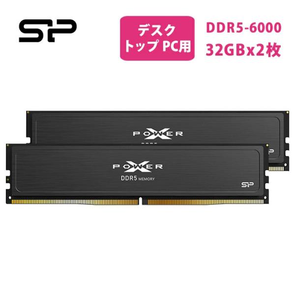シリコンパワー DDR5 64GB (2x32GB) バリューゲーミング 6000MT/s (PC5-48000) 288ピン CL38 1.35V UDIMM デスクトップメモリモジュール RAM SP064GXLWU60BFDJ