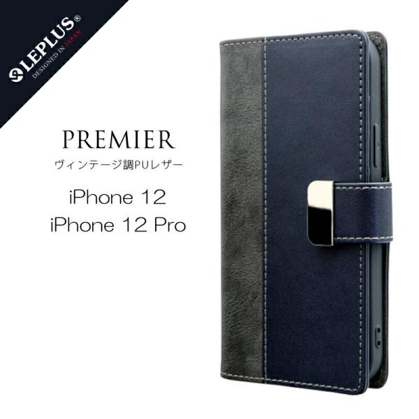 iPhone 12/iPhone 12 Pro 上質PUレザーブックケース PREMIER グレー LP-IM20PREGY 手帳型 ブック型 シンプル PUレザー ヴィンテージ調 フック カードポケット