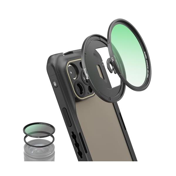 ・スマホケージの互換性Mマウントフィルターアダプターが付属しており、iPhone 15シリーズ用のSmallRigスマホケージ4407/4473/4391/4392/4393/4396/4397/4398と互換性があります。他のブランドのMマウントスマホケージには適合しませんのでご注意ください