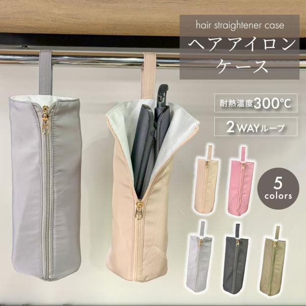 ヘアアイロンケース ヘアアイロン収納 耐熱 吊り下げ ポーチ コテ入れ 出し入れスムーズ 折りたたみ 持ち運び 旅行 トラベル シンプル おしゃれ かわいい 爆買