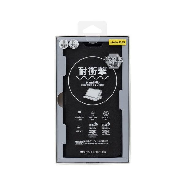 【SoftBank SELECTION】耐衝撃 抗ウイルス 抗菌 Stand Flip (ブラック) for Redmi 12 5G