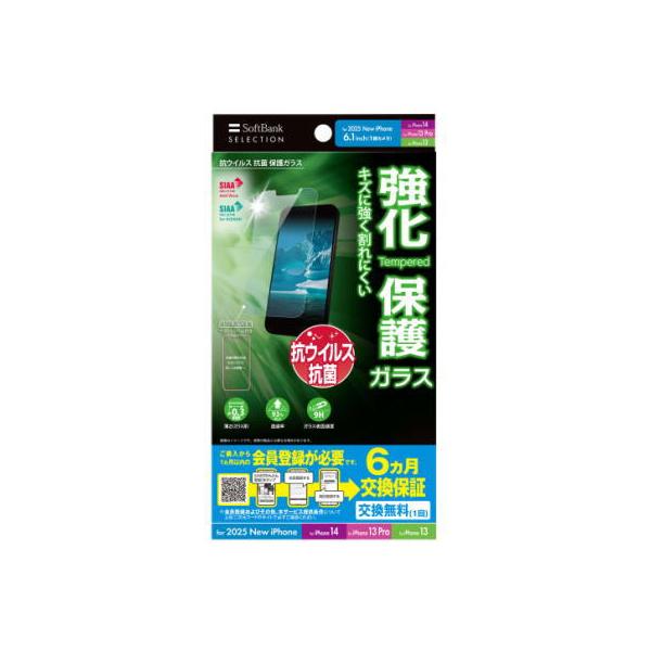 SoftBank SELECTION 抗ウイルス 抗菌 保護ガラス for iPhone 16e / iPhone 14 / iPhone 13 Pro / iPhone 13 SB-I022-PFGA/KV