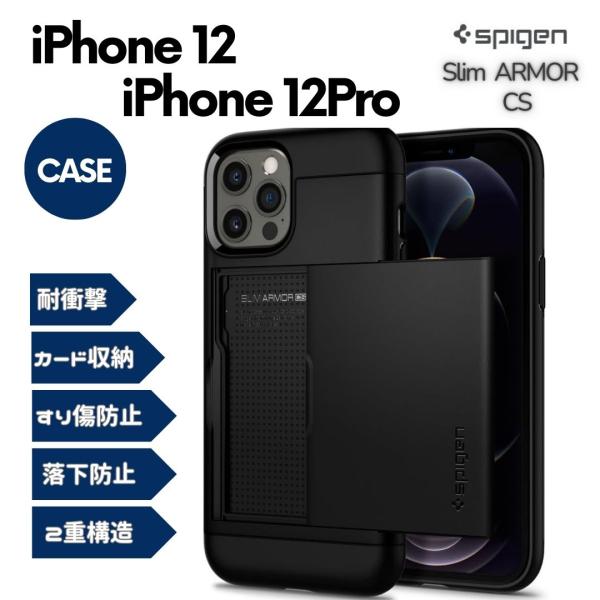 iPhone12 / iPhone12 Pro ケース カード収納 耐衝撃 落下防止 Qi充電 Spigen ACS01707 スリム・アーマーCS / ブラック