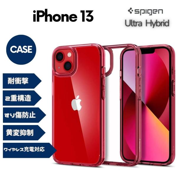 Spigen iPhone13 ケース 背面クリア TPUバンパー 耐衝撃 すり傷防止 ACS03524 レッドクリスタル