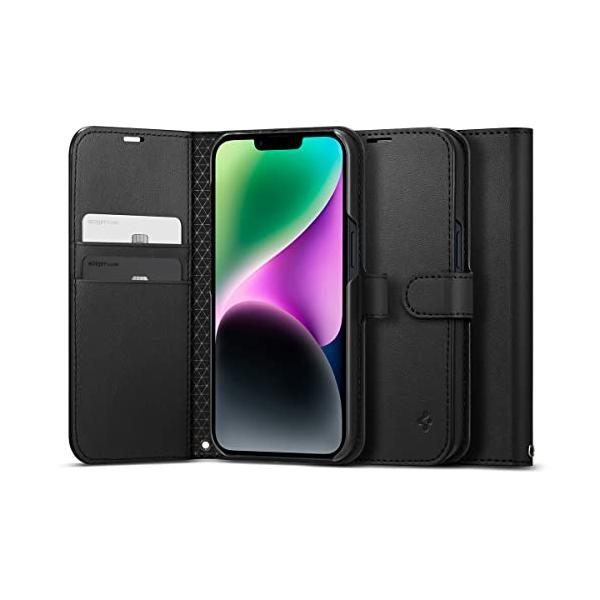 Spigen iPhone14 ケース 手帳型 ストラップ付き 衝撃吸収 耐衝撃 PUレザー 軽量 薄型 ワイヤレス充電対応 カード収納 スタン