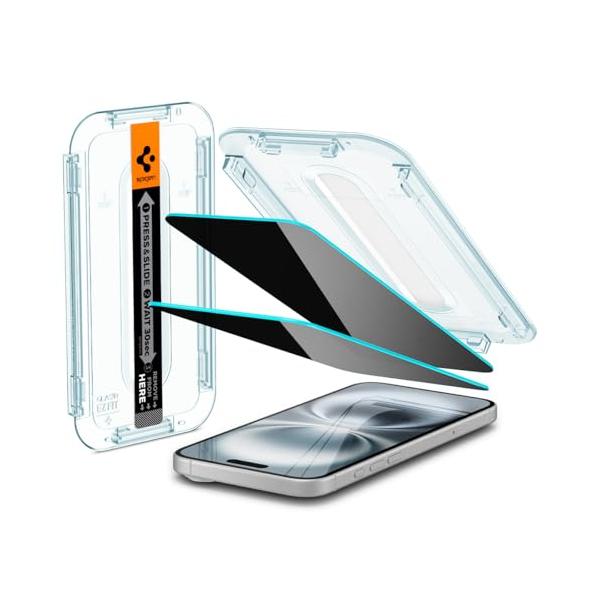Spigen iPhone 16/iPhone 15 ガラスフィルム プライバシー 9H硬度強化ガラス 貼り付けキット付き iPhone16/i