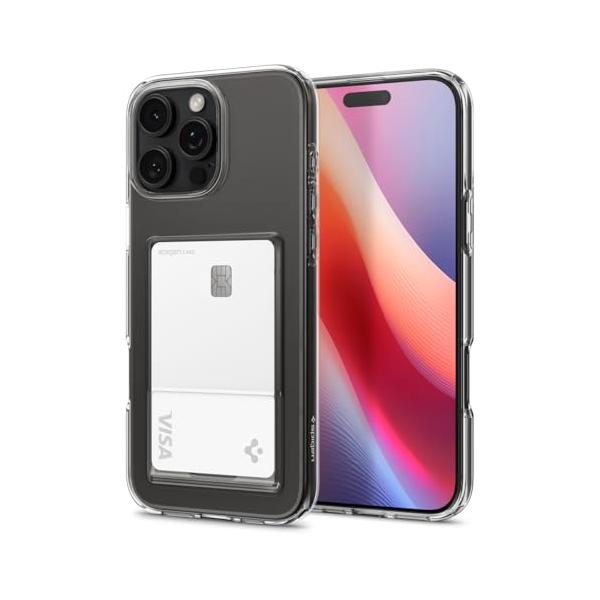 Spigen iPhone 16 Pro ケース カード収納 軽量 クリア 透明 米軍MIL規格 薄型 クリスタル・スロット ACS08144 (クリスタル・クリア)