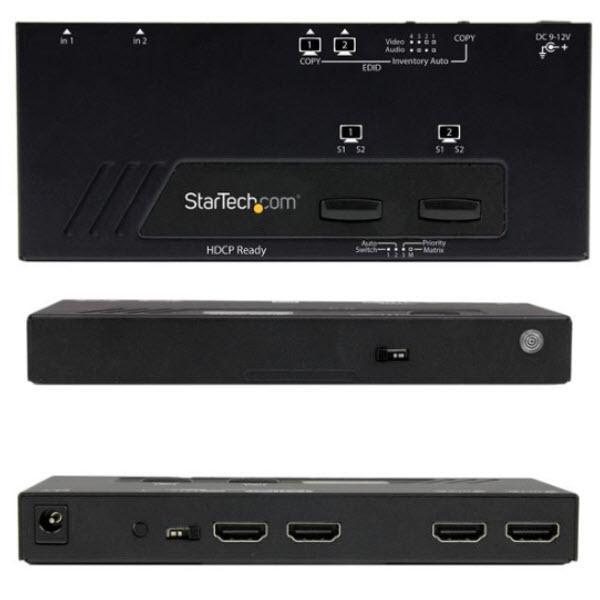 StarTech.com 2入力2出力HDMIマトリックススイッチャー切替分配器 2x2 HDMIビデオセレクタースプリッター 1080p 自動/優先切替機能付き VS222HDQ