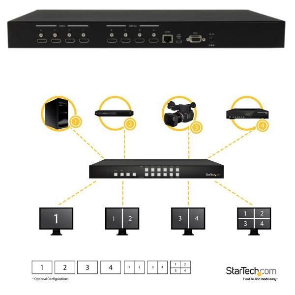 StarTech.com 4入力4出力HDMIマトリックススイッチャ―切替分配器 ビデオウォール/ピクチャインピクチャ機能 4x4 HDMIビデオセレクタースプリッター VS424HDPIP