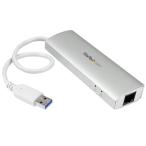 - メーカー:StarTech.com 品番:ST3300G3UA 長めのケーブルでUSB 3.0(5Gbps)ポート3口とGbEポートを1口増設するハブ