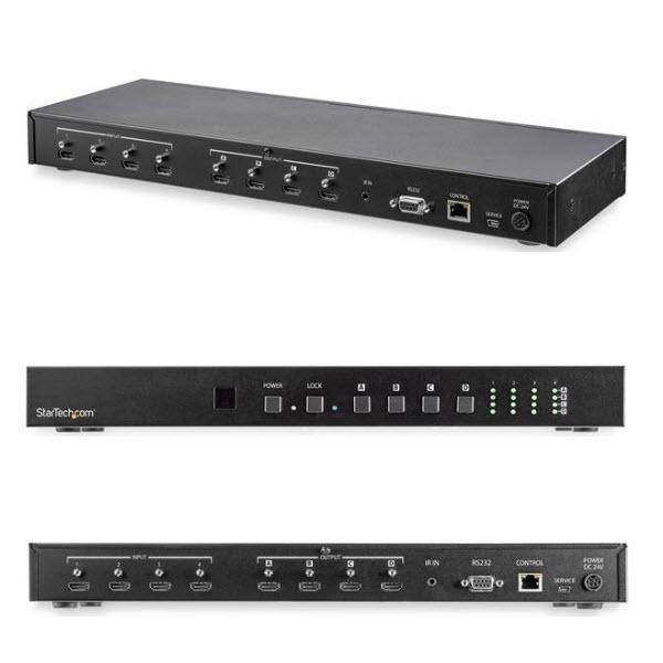 - 配送区分:FサイズZU201WB4入力4出力対応HDMIセレクター オーディオ/イーサネット制御 4K/60Hz対応HDMI切替器 4x4マトリックススイッチャ— VS424HD4K60※代金引換でのご注文はお受付できません。 ※ご注文手続き後、当店より発送予定日または取寄商品の在庫有無・納期を記載したご注文確認メールをお送りいたしますので必ずご確認をお願い致します。 こちらの商品はメーカー代理店より直送の商品となり、通常、土日祝を除く3営業日前後での発送予定となります。(詳細納期はご注文後にメールにてご案内致します。) ※発注手配の可否をメールにてご確認させて頂く場合がございます。必ず当店からご案内するメールをご確認ください。 ※商品の手配ができない場合や、発注手配可否の確認が取れない場合には誠に申し訳ございませんがキャンセルとさせていただきます。4x4 HDMIマトリックススイッチ。 4つのHDMIビデオソースを4台のディスプレイ/プロジェクタで共有します。 ・柔軟な切り替え 4つのHDMI入力を4台のHDMIディスプレイ間で 共有・切り替えが可能な4x4 HDMI分配器 ・UHD解像度 妥協のない4KビデオとHDRに対応。 便利なプッシュボタン式切替を搭載した4K60Hz HDMIスプリッター ・幅広い互換性 ビデオソースとディスプレイとの互換性を高める EDID管理機能に対応したHDMIスイッチャー ・簡単セットアップ ラックマウントに対応した省スペース設計(取付金具付属)。 WebGUI、RS232制御機能を搭載したHDMI 2.0マトリックスビデオセレクター