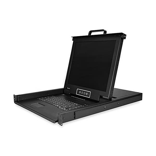 仕様:ラックマウントKVMコンソール、アクティブマトリックス駆動方式(TFT)17インチLCDモニター、1280 x 1024、1.8mケーブル付き8ポートVGA KVMスイッチ、フルキーボード(US配列) + タッチパッド、USB 2.0対応