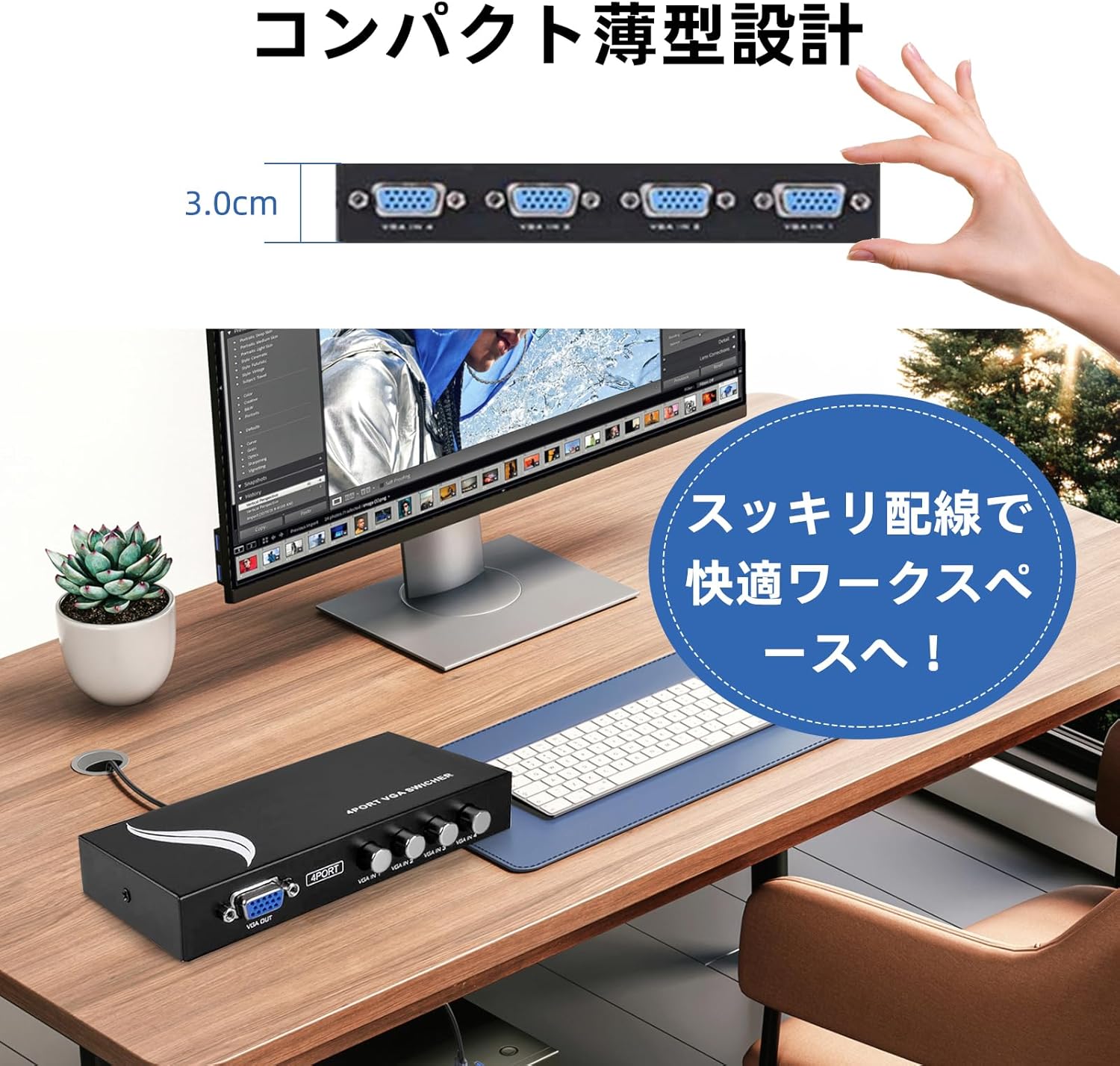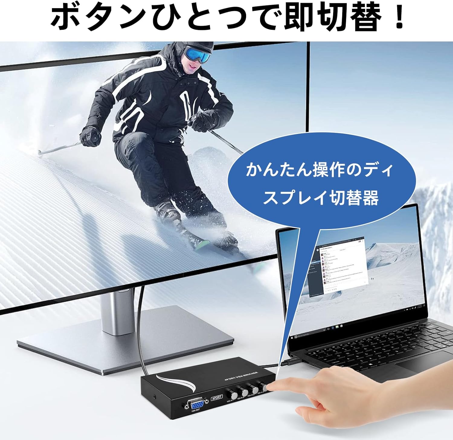 - 【4入力1出力/1入力4出力双方向対応】:最大4台のVGA機器(PC、ノートパソコンなど)を1台のモニターに接続、または1台の出力信号を4台のディスプレイに切り替えて表示可能。双方向設計により、さまざまな環境で柔軟に対応します。 【ワイド画面&フルHD1080P対応】:16:9ワイドスクリーン表示に対応し、最大解像度1920x1440(FullHD)をサポート。鮮明で高精細な映像出力を実現し、業務用・個人用を問わず快適に使用できます。 【DDC機能搭載・自動認識】;DDC(DisplayDataChannel)に対応しており、接続されたディスプレイの最適な解像度を自動で認識。ドライバ不要のプラグ&プレイ設計で、初心者の方でも安心です。 【多用途活用:会議・教育・監視】:会議室、教室、トレーニングルーム、ショールーム、監視システム、ホームシアターなど、様々な使用シーンに対応可能。プロフェッショナル用途から日常利用まで幅広く活用できます。 【日本国内1年保証&安心サポート】:本製品には安心の1年間国内保証が付属。万が一、商品に不具合があった場合は、迅速に対応いたします。