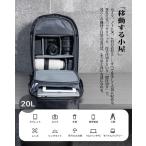 (エルラノ) 「線の美学から生まれた、新発想のカメラバッグ カメラリュック 20L 上下2気室 サイドアクセス 防水カバー付き 衝撃吸収材 大容量 カメラバッグ おしゃれ リュック バックパック クラムシェルオープン 複数ポケット (パッド入りショルダーストラップ/調節可能チェストストラップ/防水YKKジッパー 普段使い/旅行/通勤