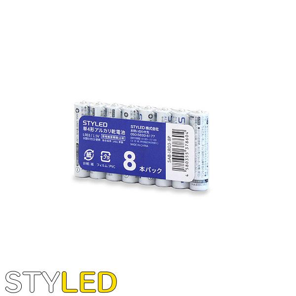 8本入り1パック STYLED スタイルド SAB-LR03-8P/単4形 アルカリ乾電池 使用期限10年 JIS準拠 SABLR038P「区分A」