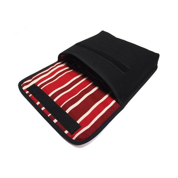 アダプタケース・Lサイズ(ブラック・ボルドーストライプ) --suono(スオーノ)ハンドメイド