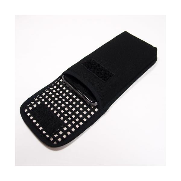 iPhone SE ケース(ブラック・グラフチェック)--タテ型--ベルトループなし-- suono(スオーノ) ハンドメイド