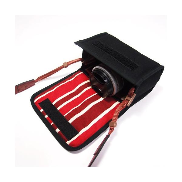 FUJIFILM X-A5ケース -カラビナ付(ブラック・ボルドーストライプ) --レンズキット用 --suono(スオーノ)ハンドメイド