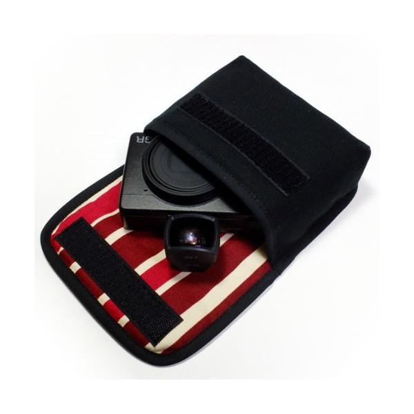 リコーGR3xケース / GR3ケース--外部ファインダー用(ブラック・ボルドーストライプ)--suono(スオーノ)ハンドメイド