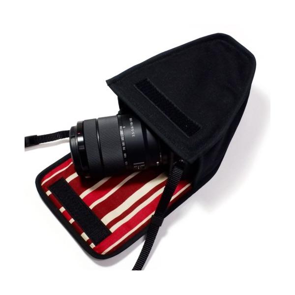 ソニー α6400 ケース / α6300 ケース (ブラック・ボルドーストライプ) 高倍率ズームレンズキット用 suono (スオーノ) ハンドメイド SONY