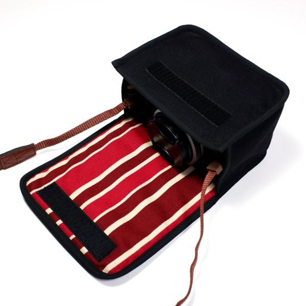 FUJIFILM X-A7ケース(ブラック・ボルドーストライプ)レンズキット用 suono(スオーノ)ハンドメイド カメラケース ミラーレス