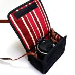 FUJIFILM X-A7ケース カラビナ付(ブラック・ボルドーストライプ)レンズキット用 suono(スオーノ)ハンドメイド カメラケース ミラーレス