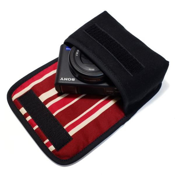 ソニー VLOGCAM ZV-1ケース(ブラック・ボルドーストライプ)--suono(スオーノ)ハンドメイド