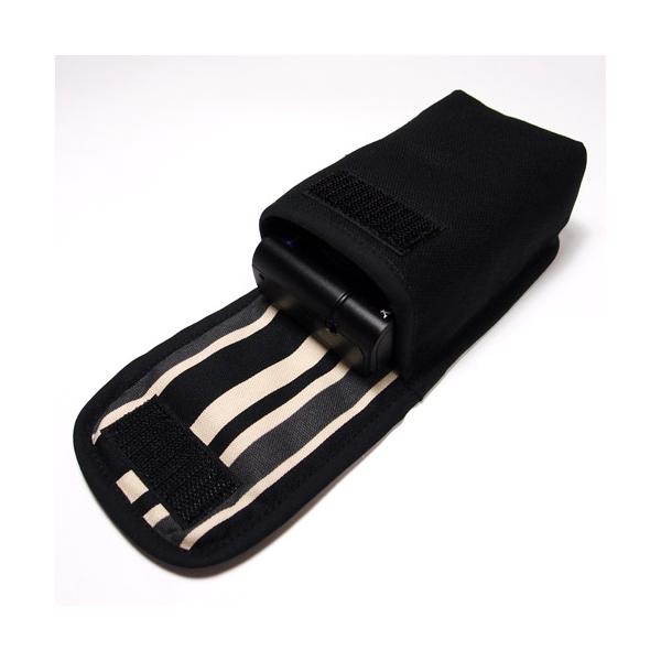 カメラの黒いボディによく合う手触りのよいオックス、プリントファブリックを使ったソニー VLOGCAM ZV-1ケース(タテ型)です。