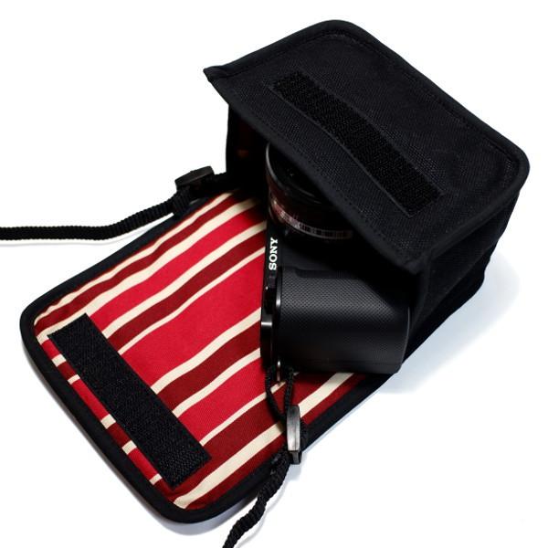 ソニー VLOGCAM ZV-E10ケース(ブラック・ボルドーストライプ)パワーズームレンズキット suono ハンドメイド